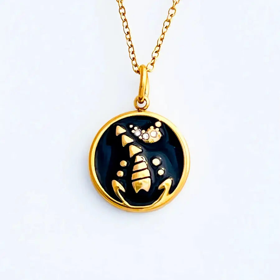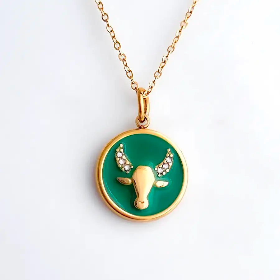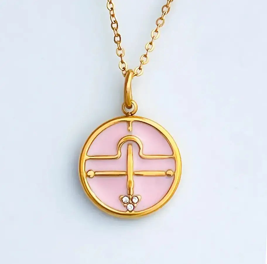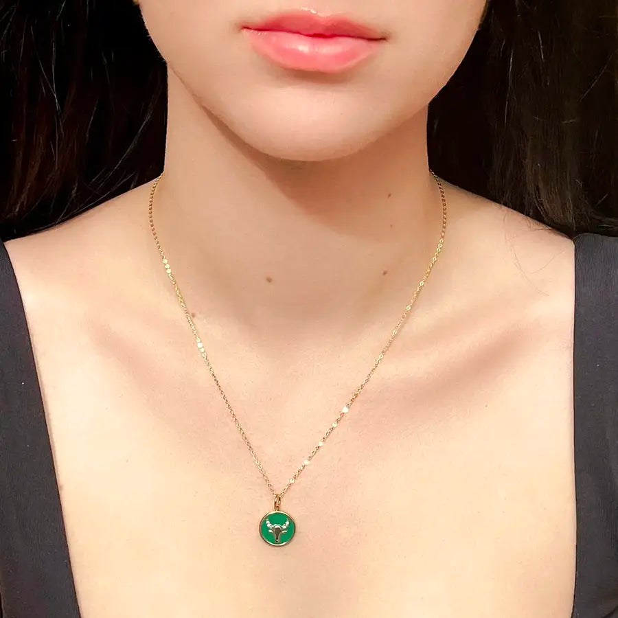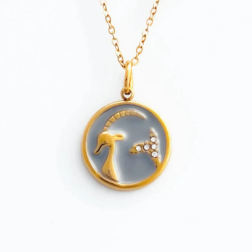 Ascend to celestial elegance with our stunning round zodiac pendant necklaces, featuring 18k gold plated stainless steel and captivating enamel painted backgrounds in vibrant hues. Embrace the stars and showcase your astrological essence with grace and allure.