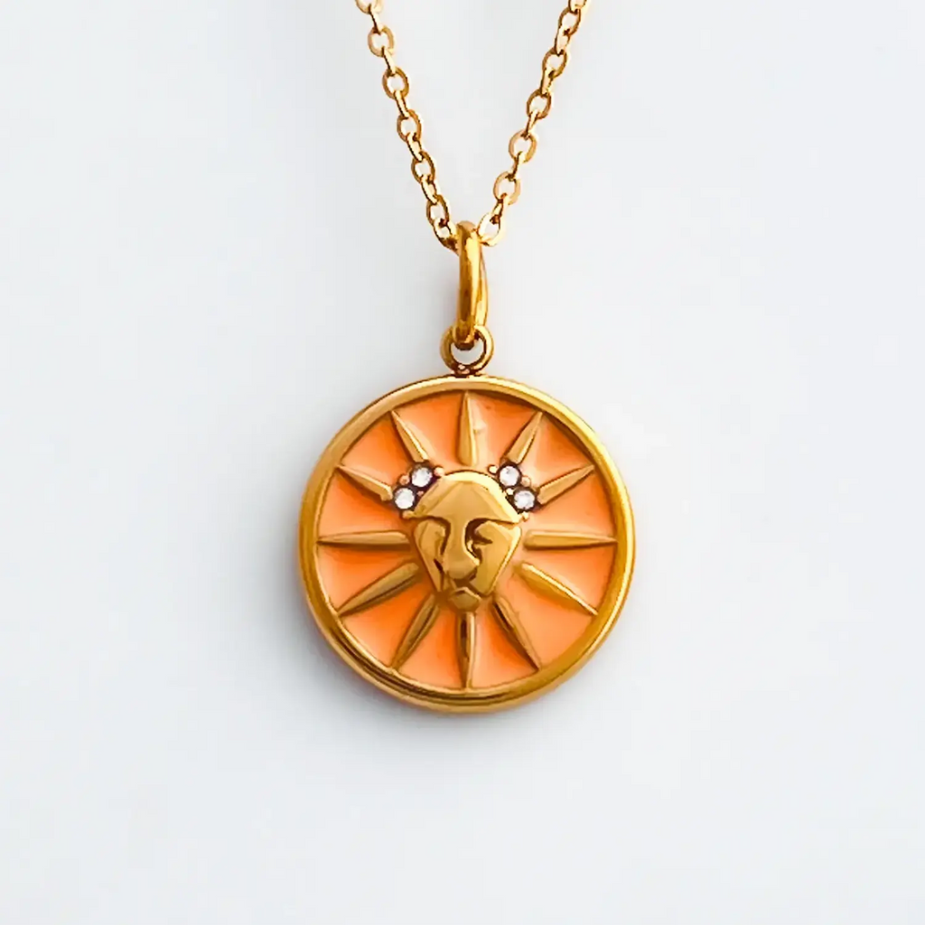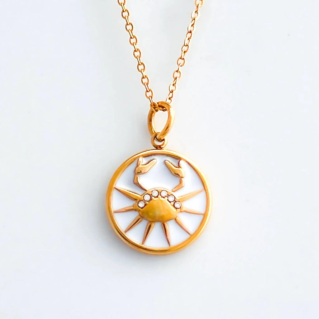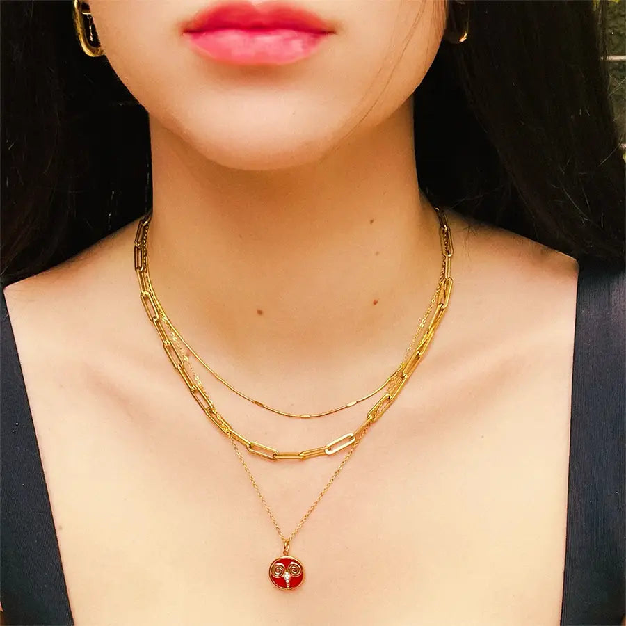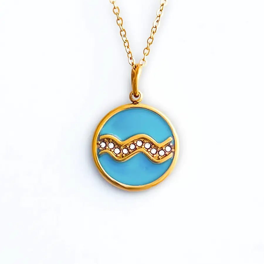 Ascend to celestial elegance with our stunning round zodiac pendant necklaces, featuring 18k gold plated stainless steel and captivating enamel painted backgrounds in vibrant hues. Embrace the stars and showcase your astrological essence with grace and allure.