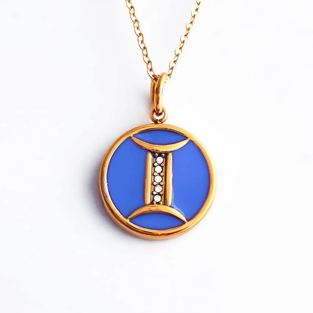 18k gold plated enamel painted zodiac sign pendant necklaces