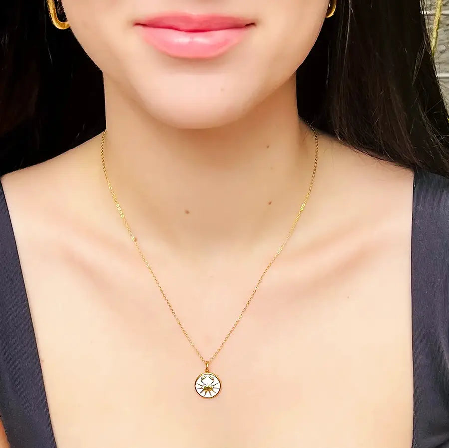 Crafted from 18k gold plated stainless steel, each pendant boasts a waterproof and hypoallergenic design, ensuring enduring beauty for all occasions and all day wear.
